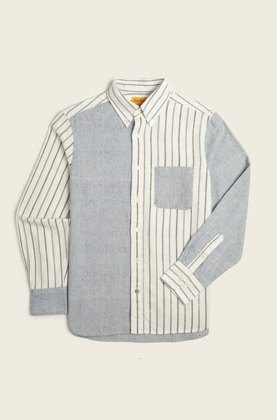 N°103 Contrasting Parts Button Down Collar Long Sleeve Shirt